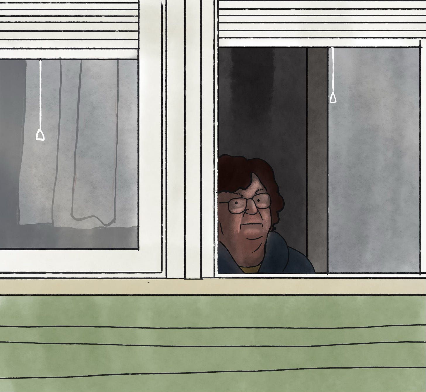 They’re an odd pair that live in that flat. All the exterior windows are translucent, so nobody can see inside when they are closed. It’s not normal. I don’t want to watch all day, of course, I would never do that. I like to sit by the window for the fresh air, but I do like to know what kind of people are living around here. The fact that their windows are translucent must mean something odd goes on in there. It’s very strange. I expect they spend much of the time naked.