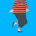 There she is, looking for something in the mess. Ah, those must be pyjamas what with all those stripes. At least it’s pyjamas. No bra on, so yes, must be pyjamas. Oh, she’s just spotted me. It’s alright, though. I’m facing slightly to my left. She’s a good fifty metres away, so she can’t possibly see that I’m looking straight at her.